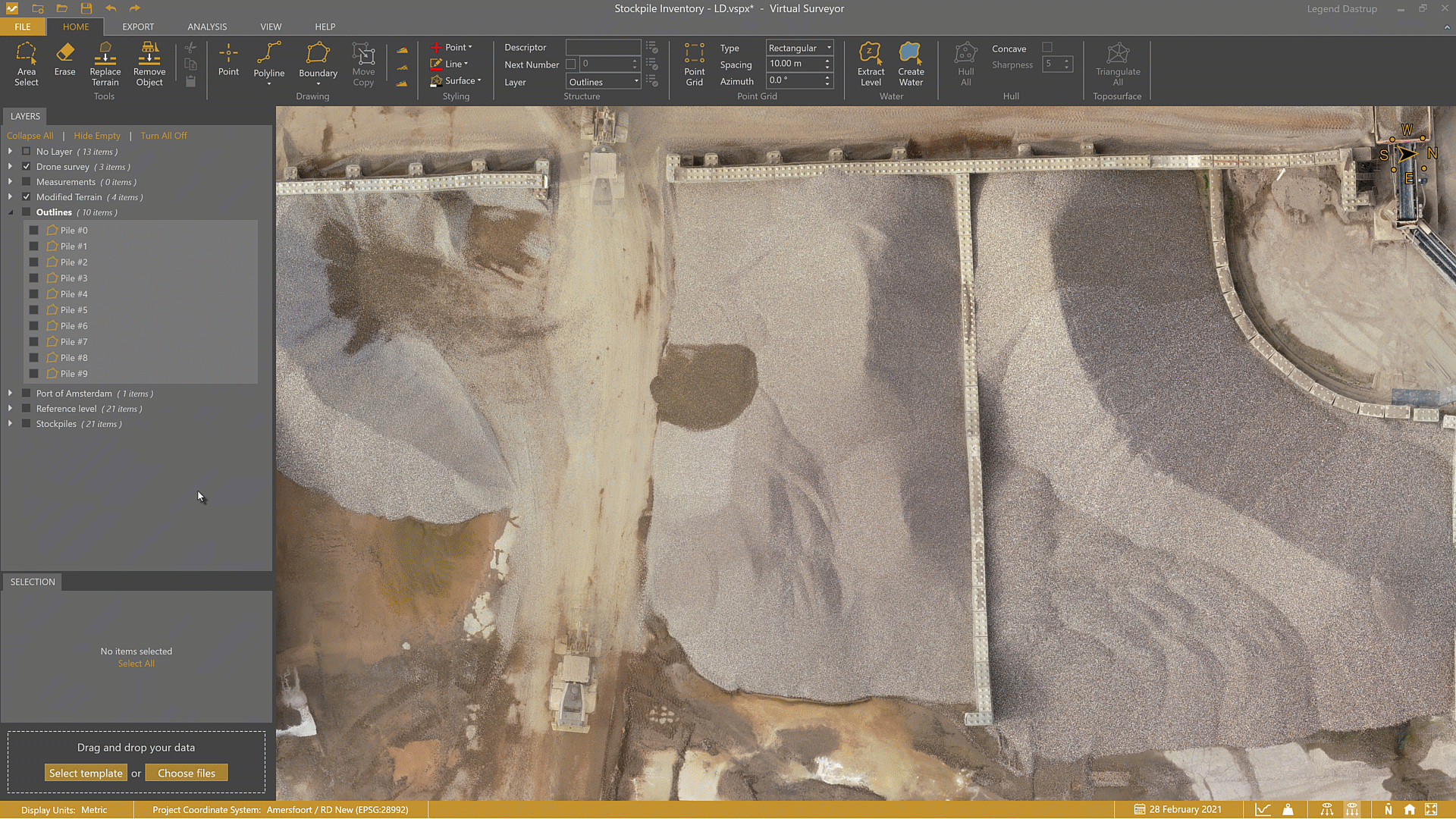- Draw a boundary around the stockpile.