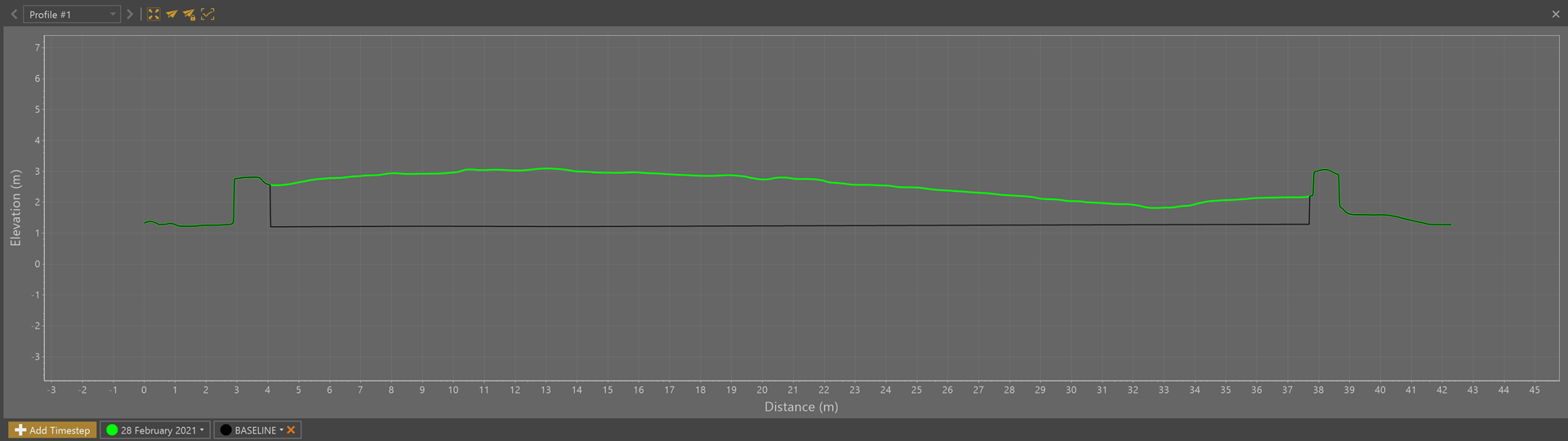 - Multiple stockpiles over time - Use Timesteps to compare stockpile surveys over time or contrast filled stockpiles with an Empty Site. Access the Timeline from the View tab or the calendar icon in the status bar. (Peak/Mountain users only.)
