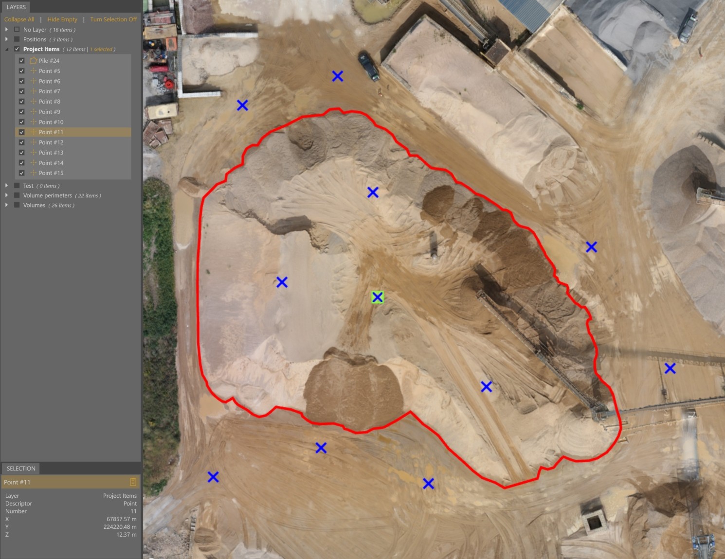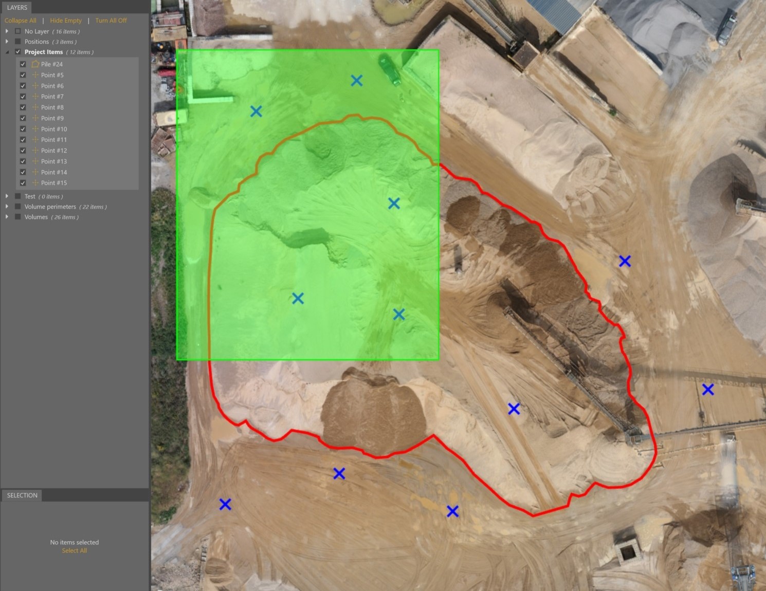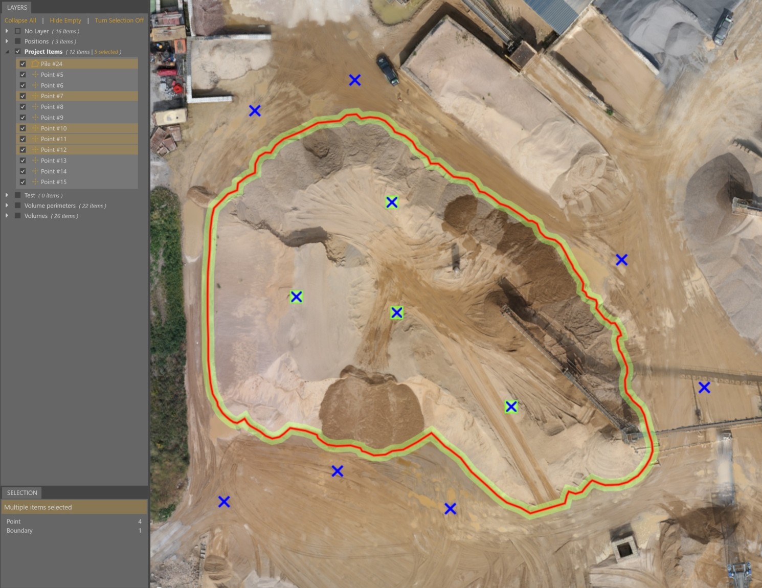 To edit, remove, or use objects in your project, you need to select them first. There are multiple ways to select objects in the VirtualSurveyor app.