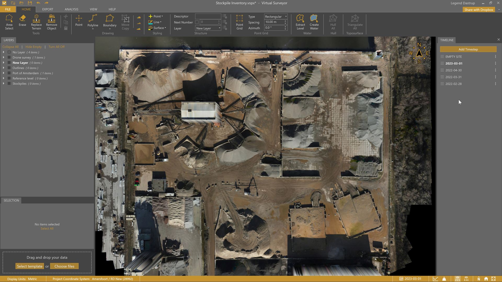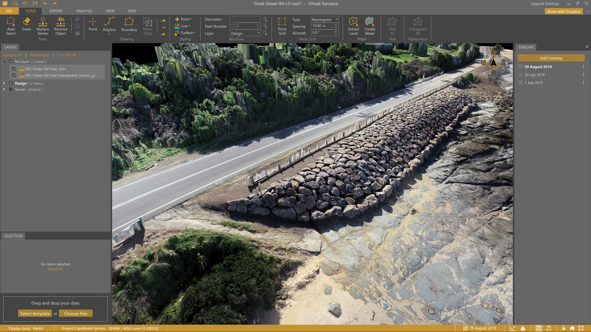 - When the Virtual Surveyor app loads, your drone dataset appears as a new Timestep in the Timeline, automatically named with the flight date.