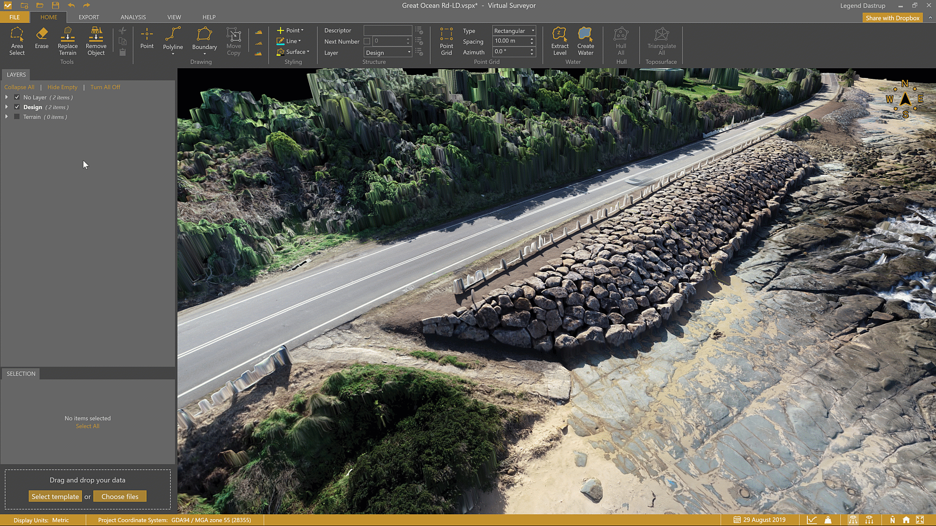 For example, the project below shows what material we want to cut away (red and orange), not what needs to be filled in (blue). We need to ensure that the most recent dataset of 1 March 2019 is shown at the top of the Timeline sequence.