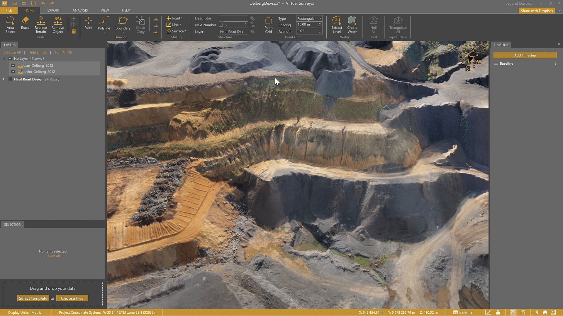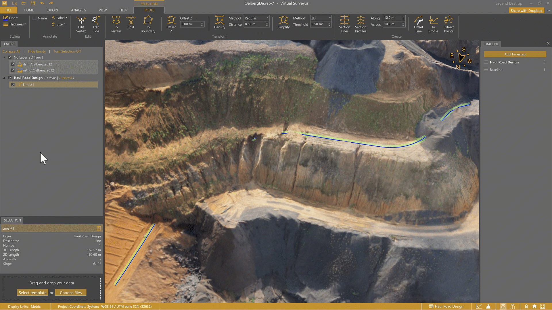 Once the haul road is being built, we can fly and add the next drone dataset as another Timestep to compare and track progress for the build.