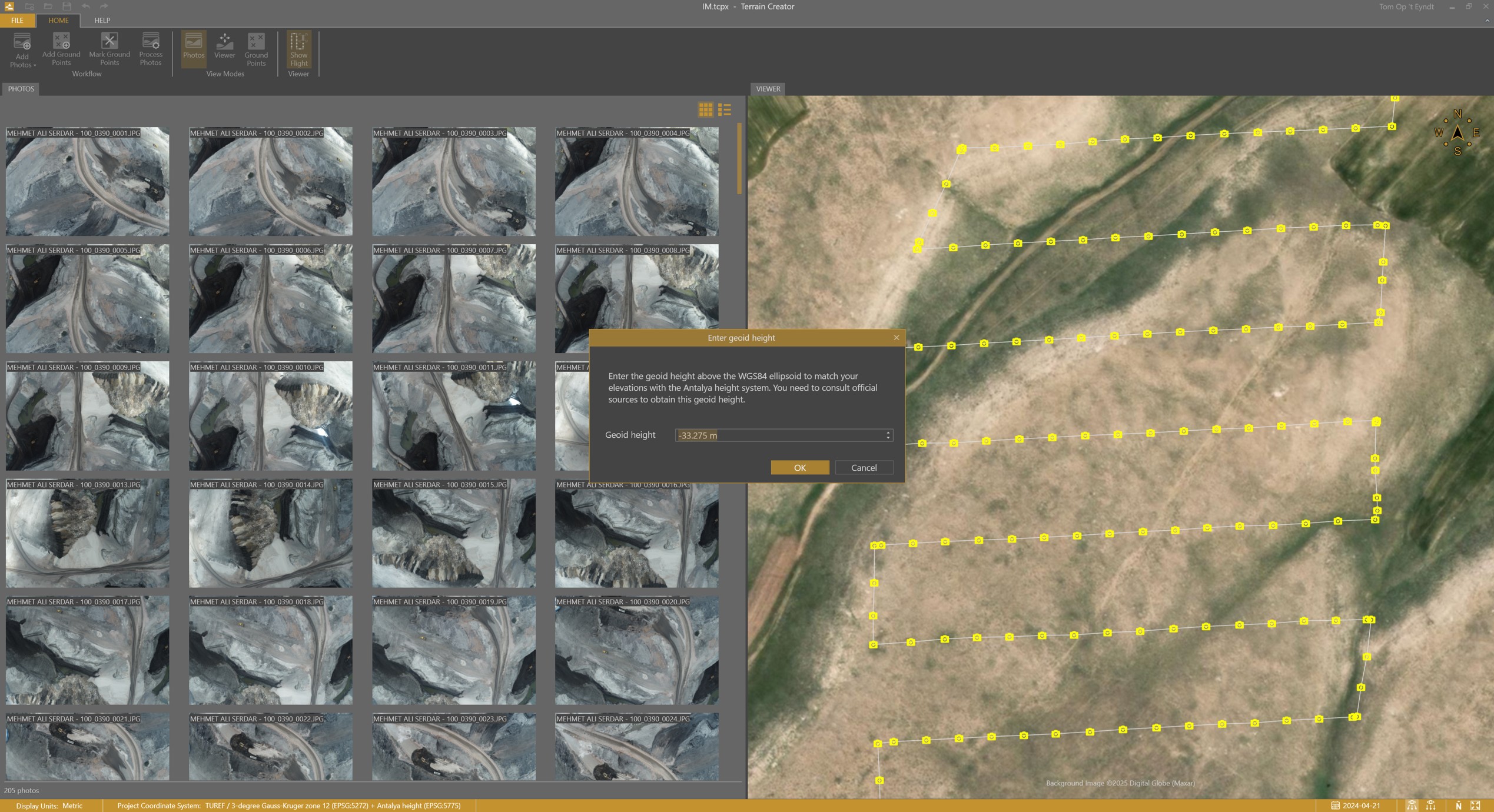 Drone photos come with elevations expressed as ellipsoidal heights. When you load these photos, the TerrainCreator app automatically converts ellipsoidal heights to orthometric heights for many regions. In regions where the app doesn’t have the information, you now have the option to manually enter the geoid height before processing your drone photos.